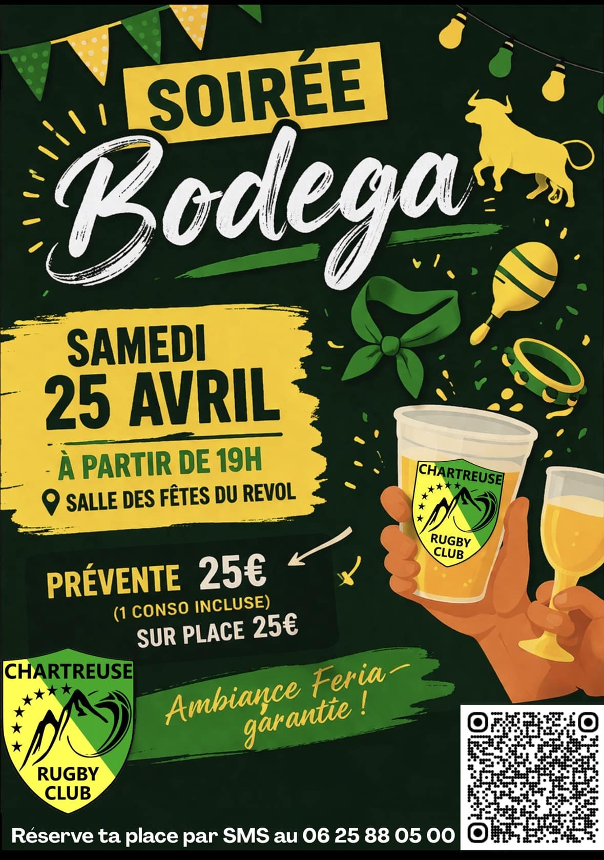 Bodega du Chartreuse Rugby Club le samedi 25 avril à partir de 19h00 à la salle du Revol de Saint-Laurent-du-Pont