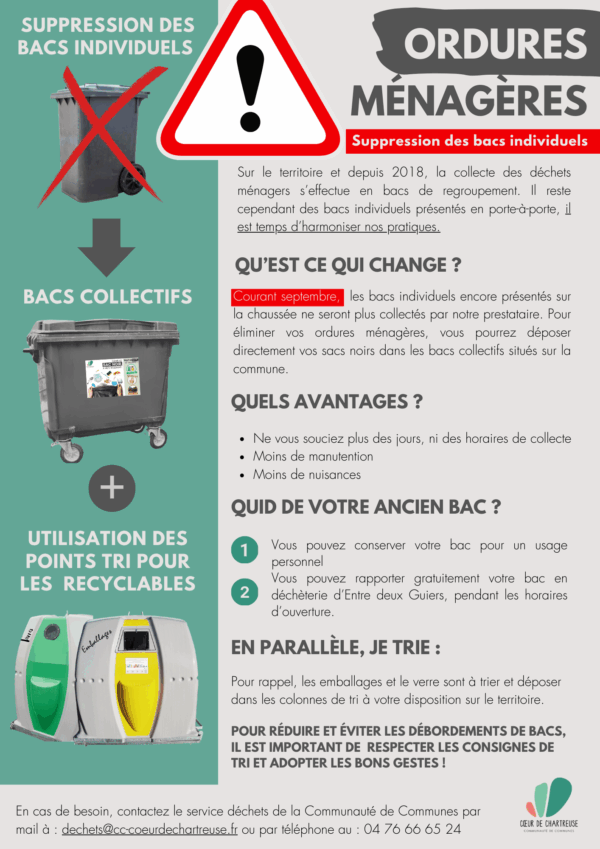 La gestion des déchets relève de la compétence de la Communauté de Communes Cœur de Chartreuse