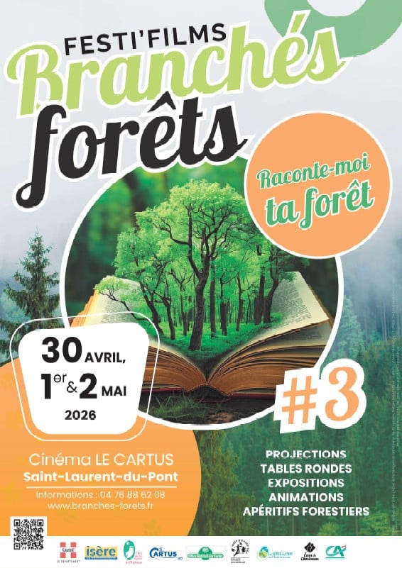 Du 30 avril au 02 mai 2026, l’association des Amis du Parc et le cinéma le Cartus, avec l’appui de l’ONF et du Parc naturel régional de Chartreuse, organisent 3 jours de projections, de rencontres et de débats pour entrer dans l’univers forestier. Rendez-vous au cinéma le Cartus à Saint-Laurent du Pont, vous trouverez projections et de nombreuses animations.