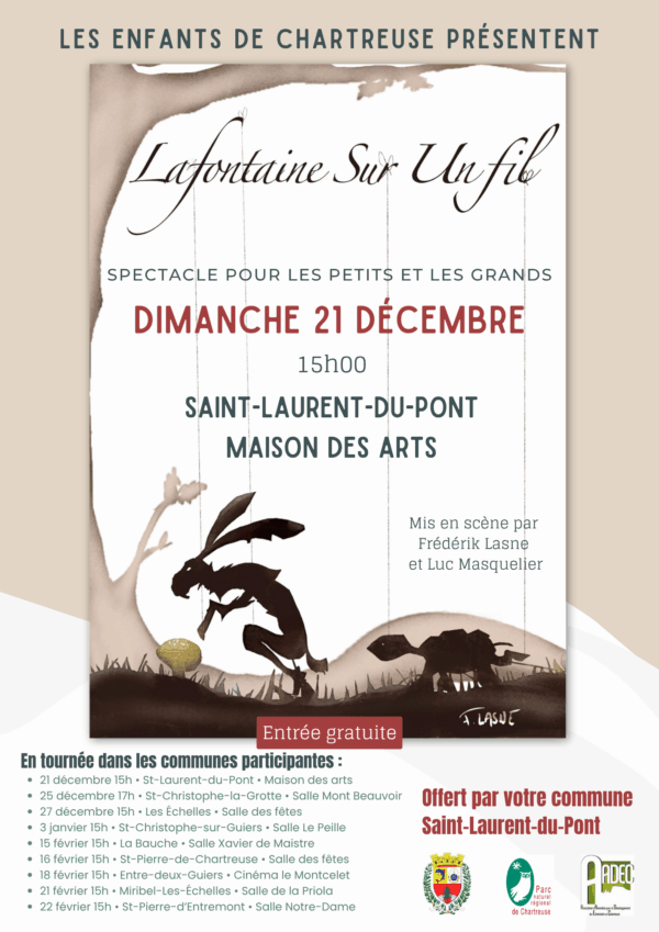 Dans le cadre de la tournée du spectacle « La Fontaine sur un fil », porté par les Enfants de Chartreuse, rendez-vous le dimanche 21 décembre à la Maison des Arts
