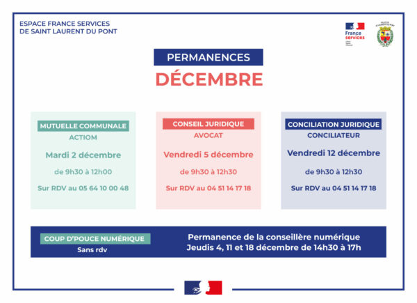 Information et prise de rendez-vous auprès de la France Services de Saint Laurent du Pont.