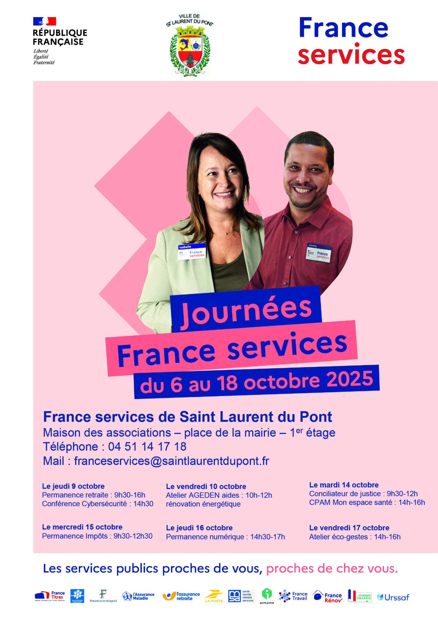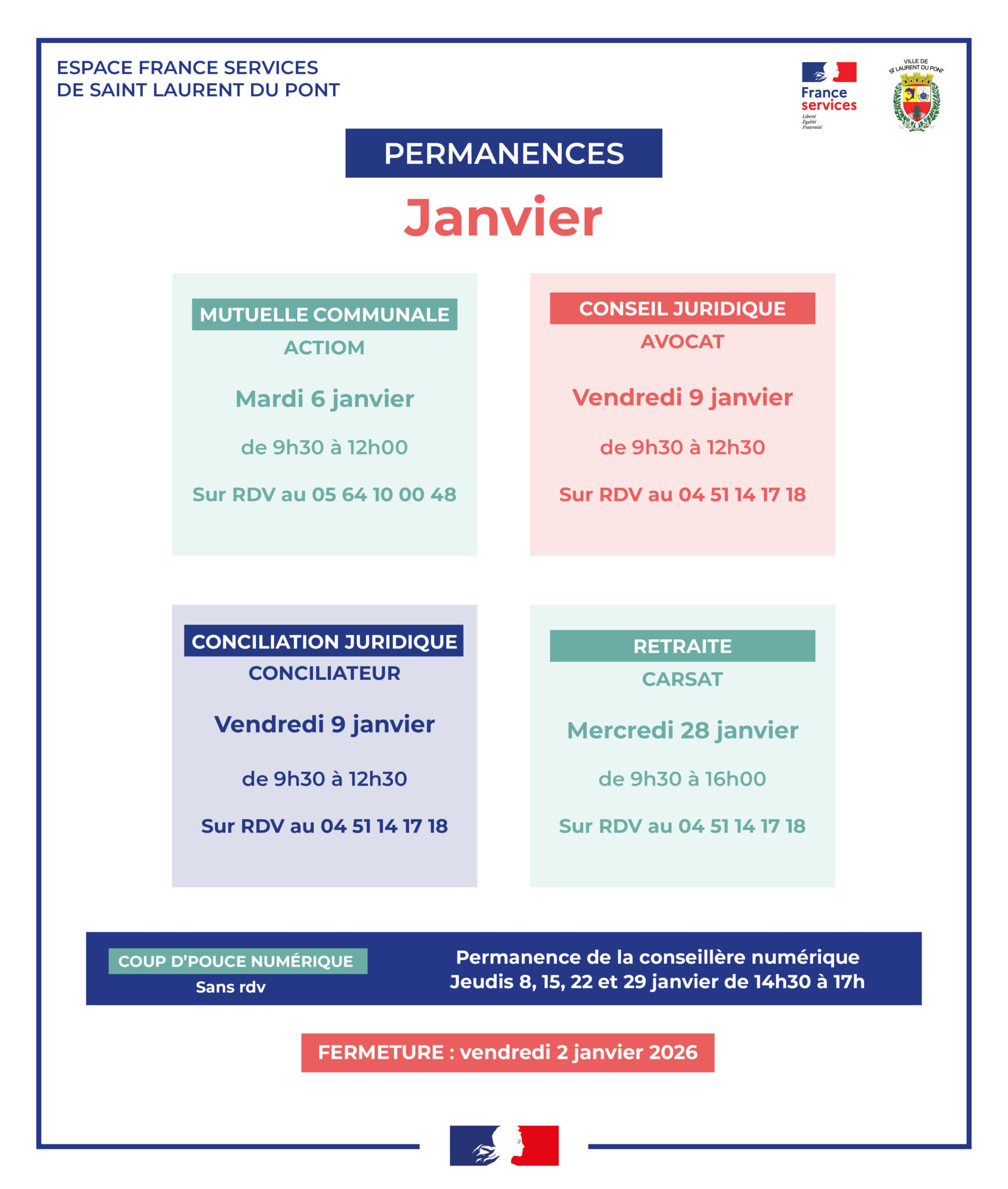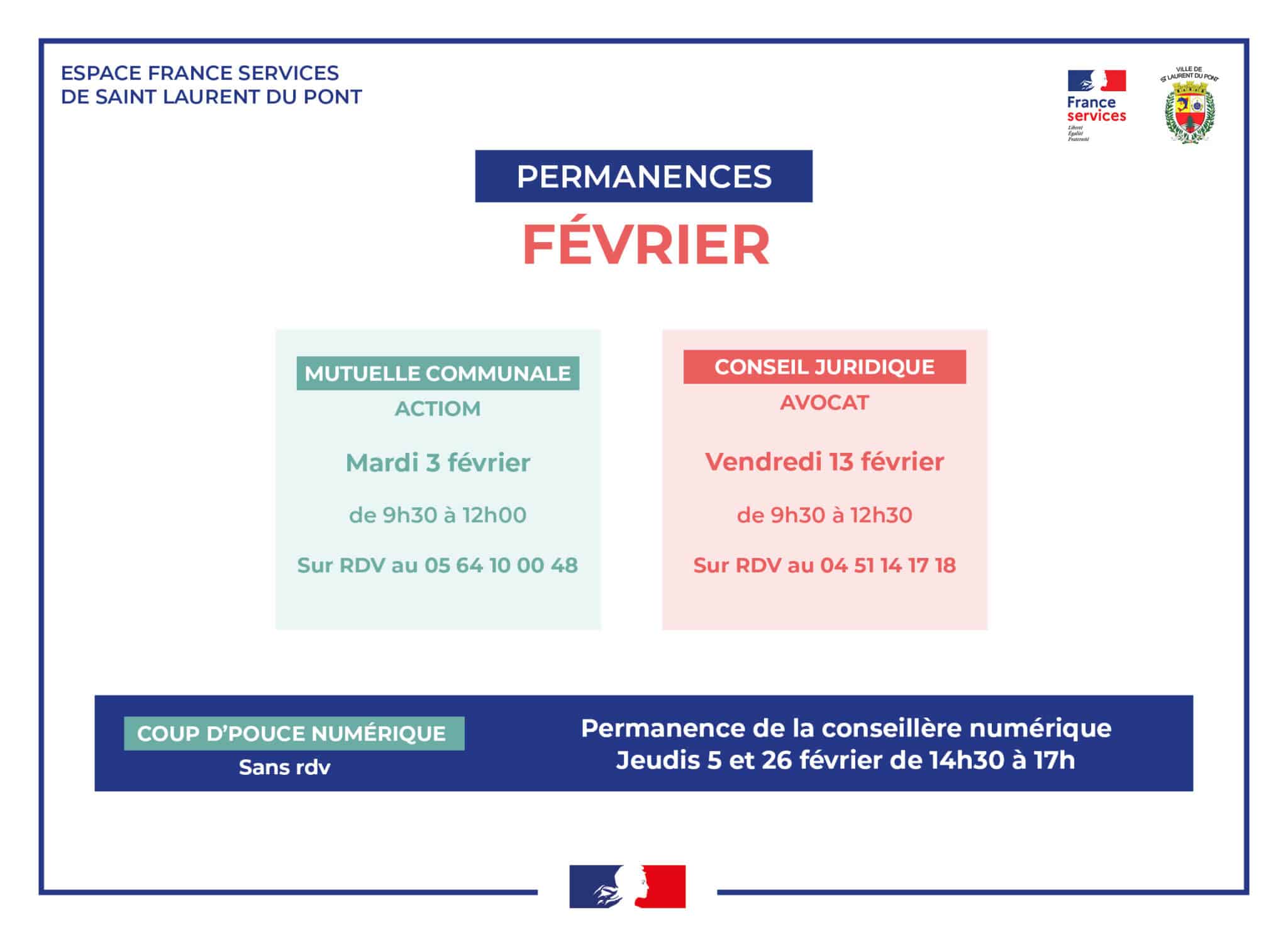 Dans le cas où la France Services n’est pas joignable par téléphone, merci d’envoyer un e-mail à franceservices@saintlaurentdupont.fr (réponse sous 48h ouvrées)