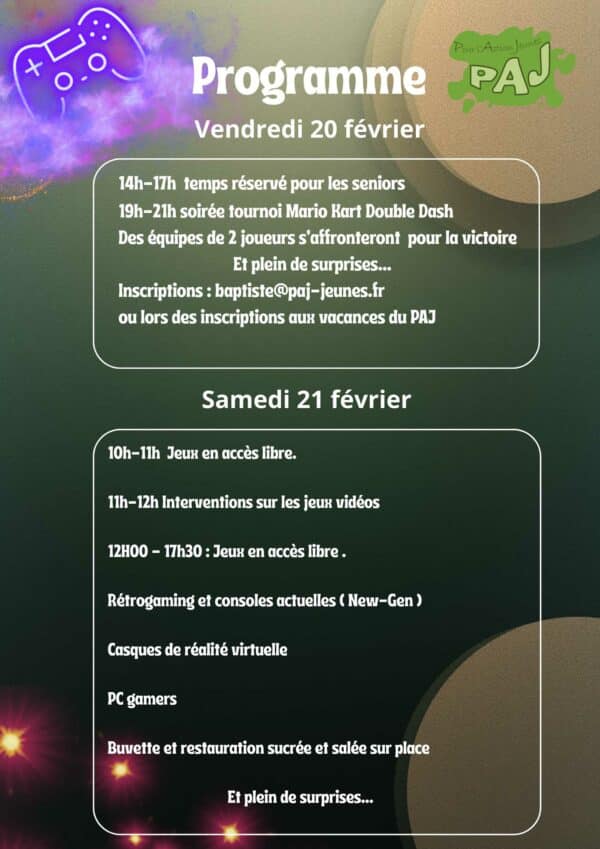 Le salon du jeu vidéo organisé par le PAJ a lieu les 20 et 21 février 2026
